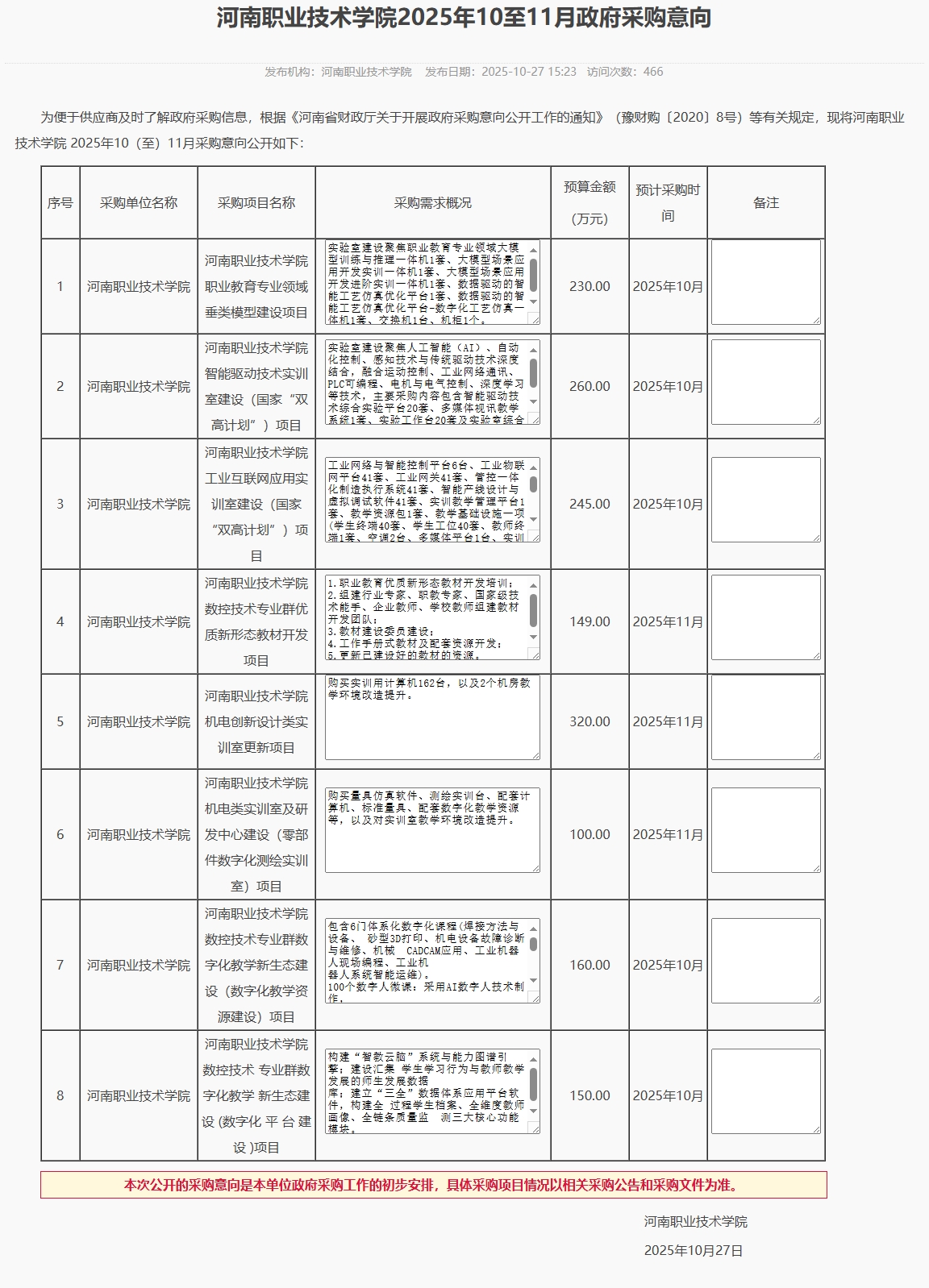 77779193永利集团2025年10至11月政府采购意向